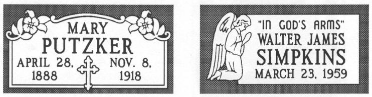 Typical Monument Styles are shown below. Other styles are available.
